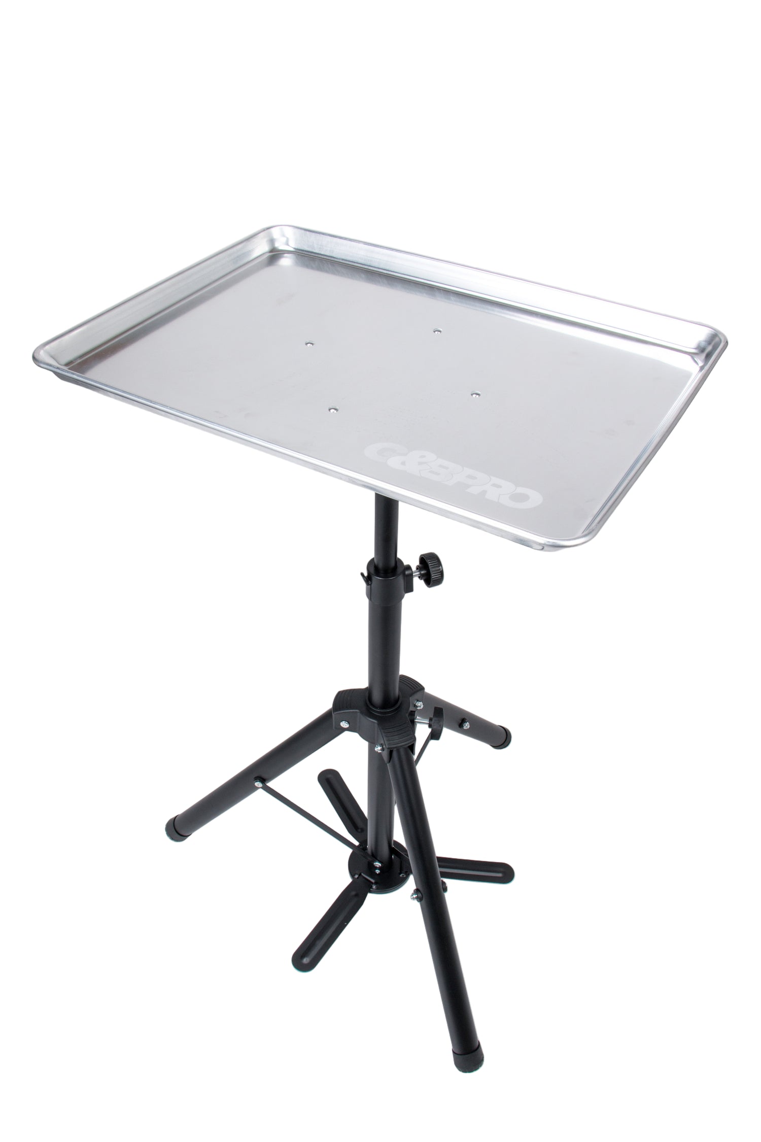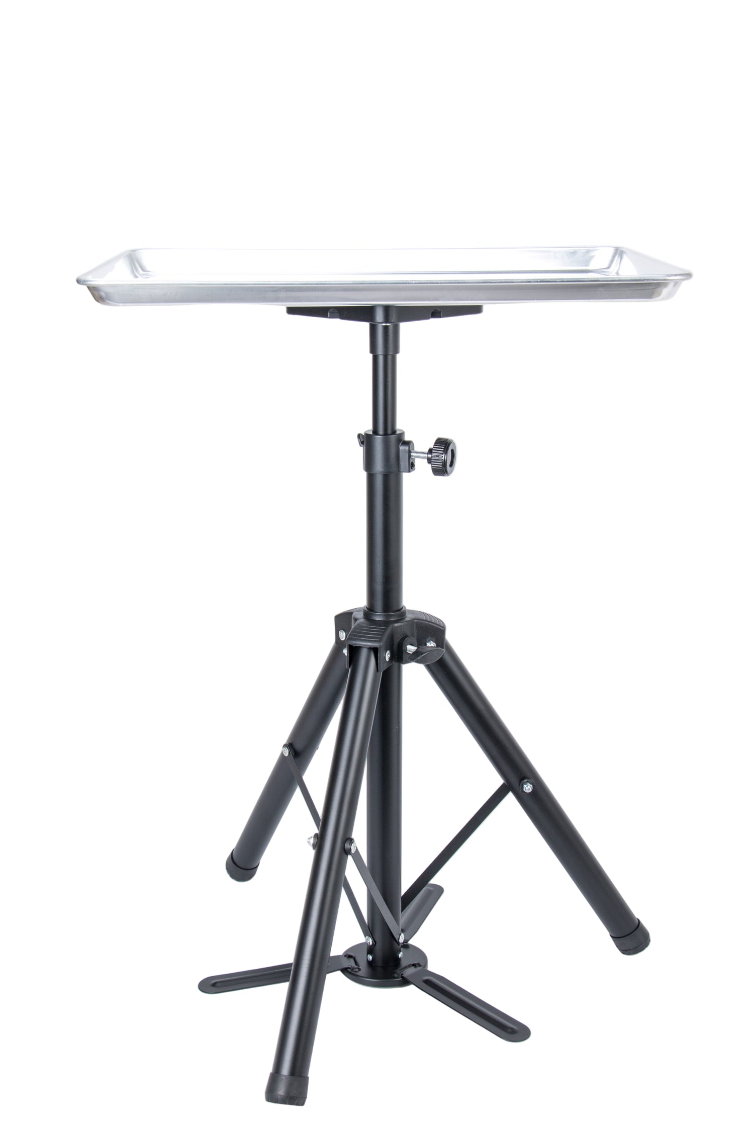 The salon and mobile professional tray system with an adjustable tripod base for barbers and groomers, assembles in just 60 seconds!