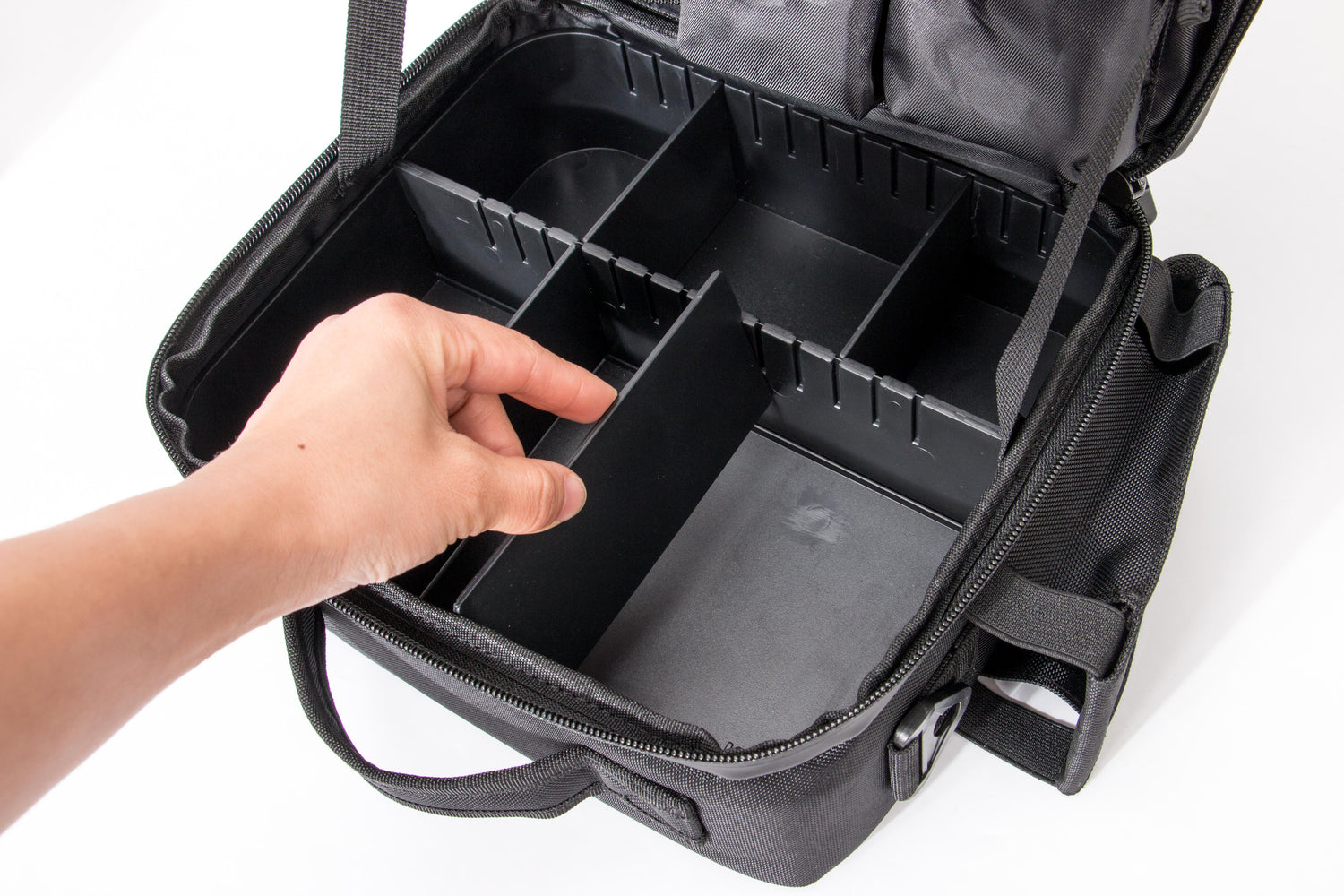 Compact, portable workstation designed for barbers and stylists on the go. Built for mobility and efficiency, it features storage drawers and tool compartments.