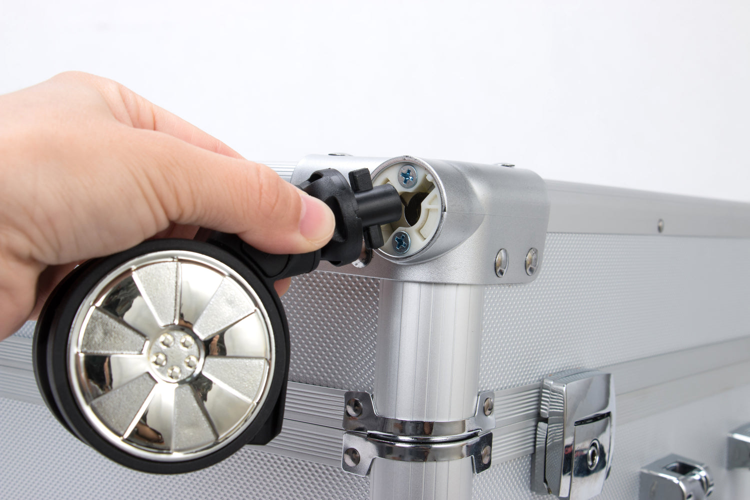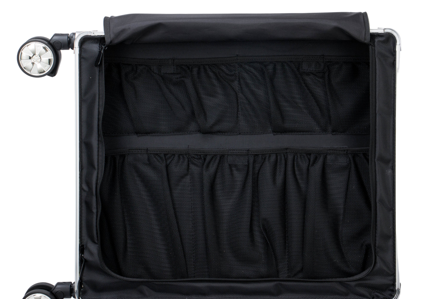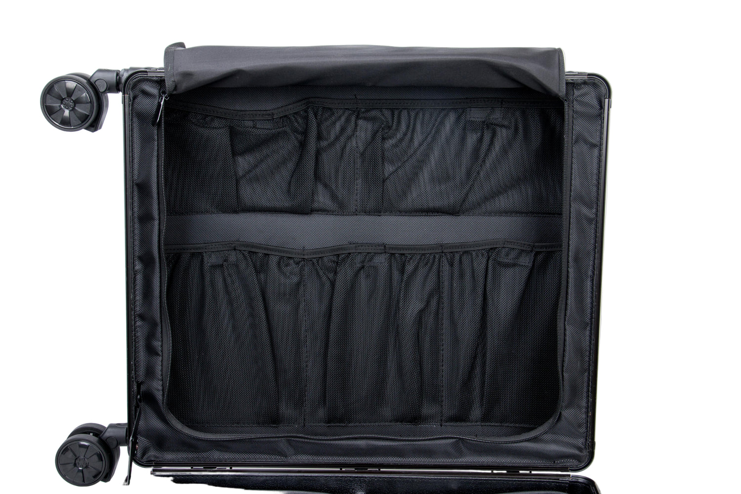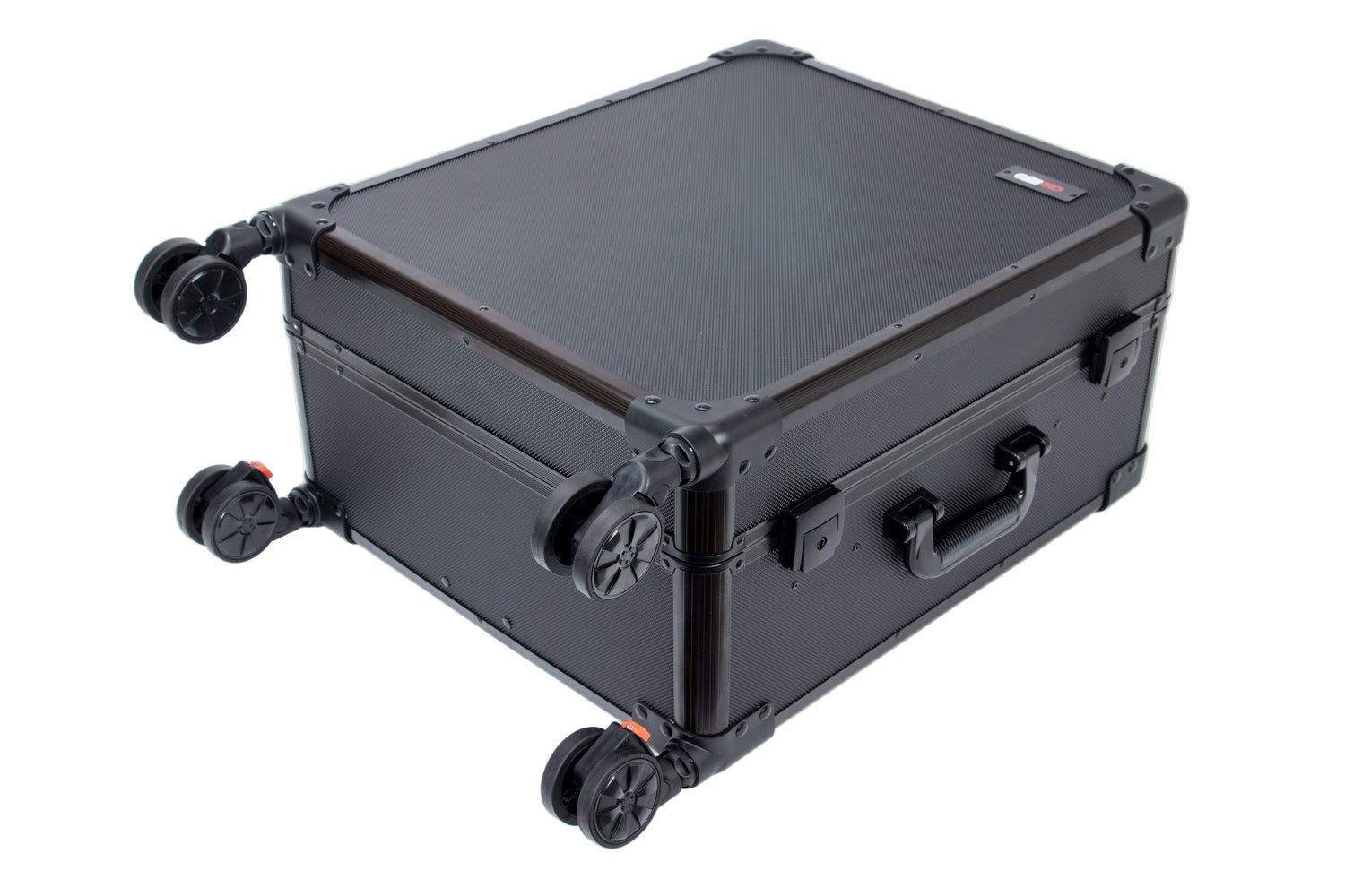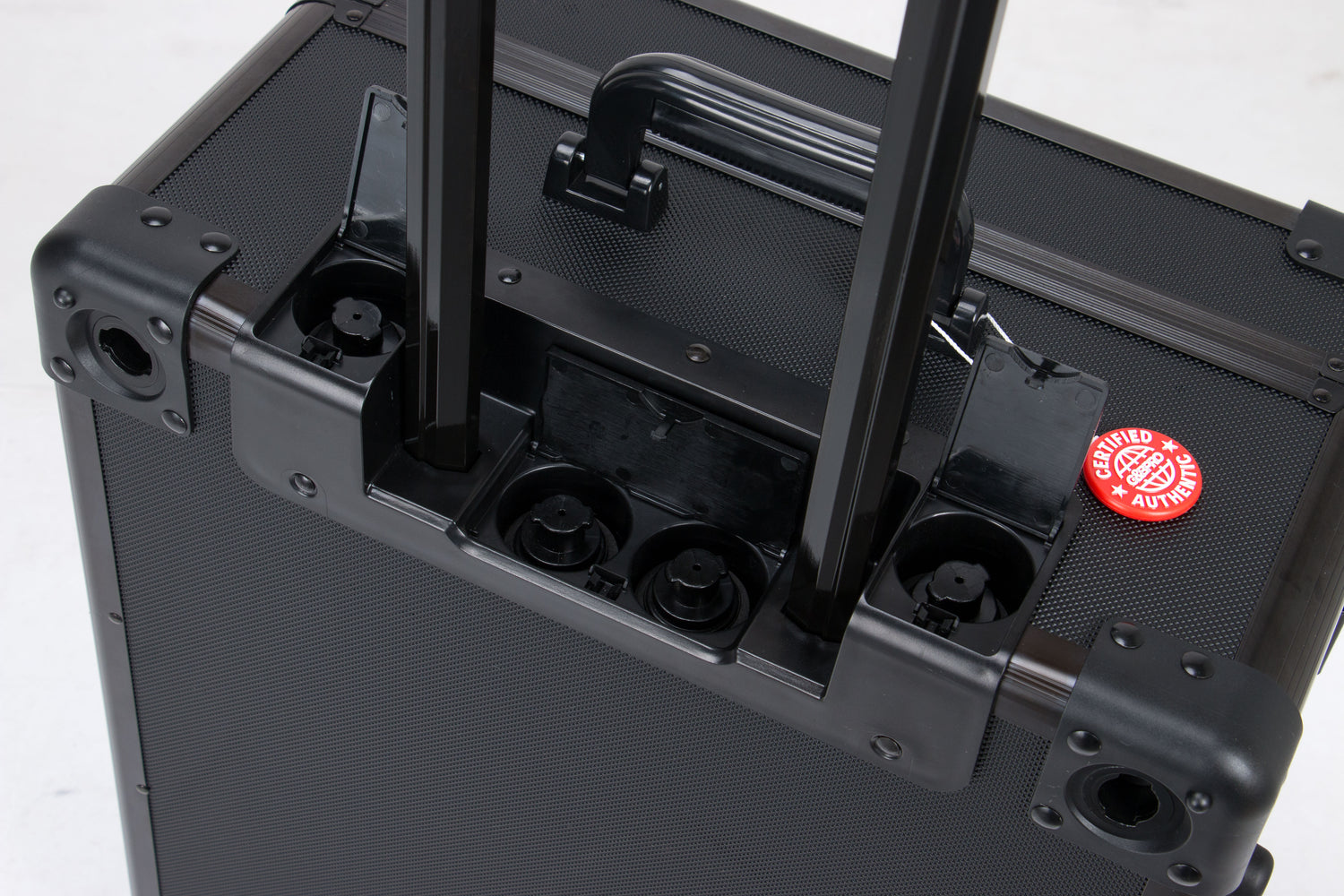 Ultimate roller mobile station with patented extending tray system, modular interior, 360° wheels, hidden leg compartments, wireless LED mirror, packing cubes, and organizing pouch, fits all your tools and sets up instantly for work anywhere.