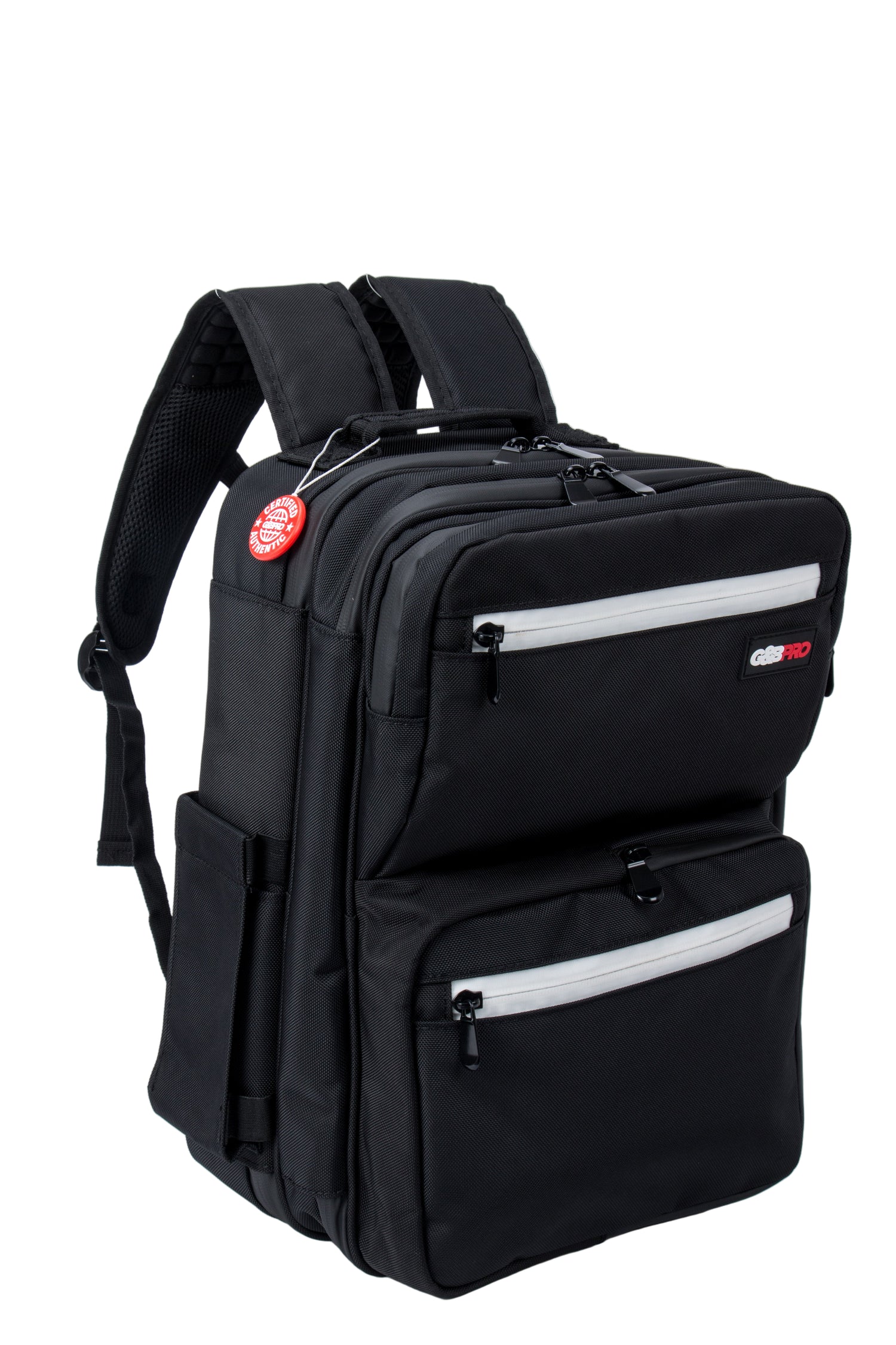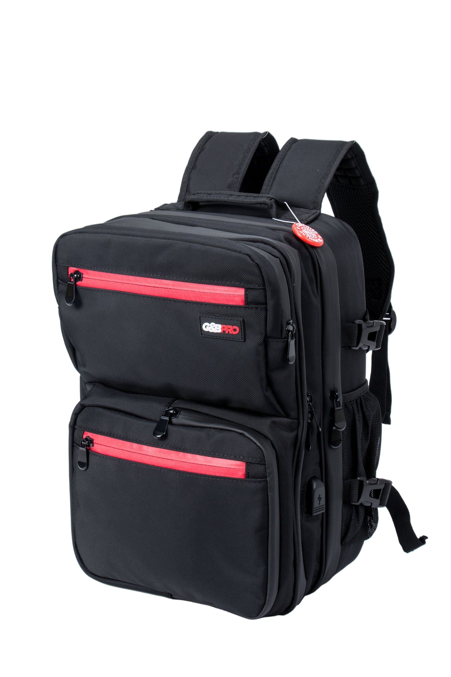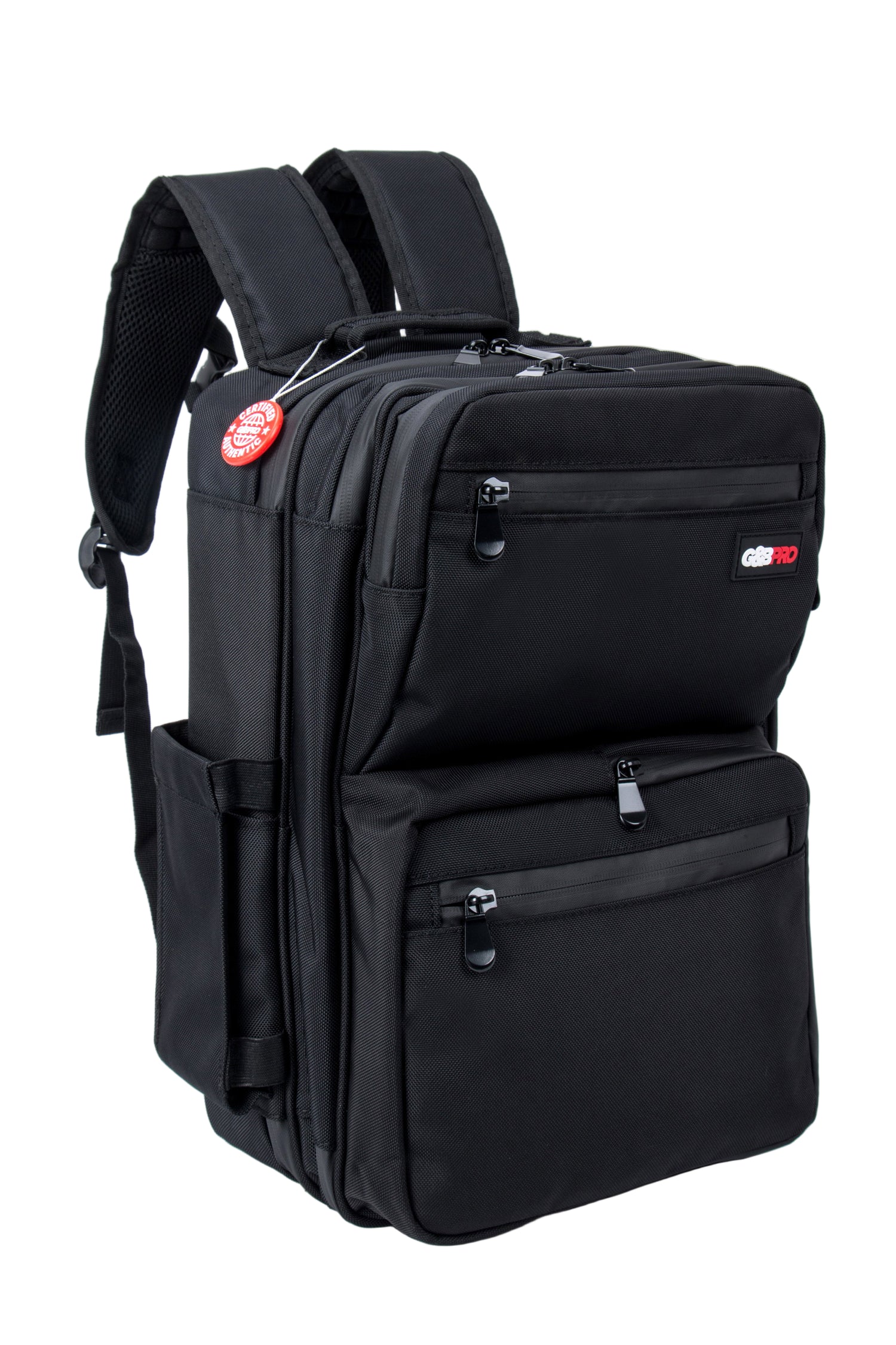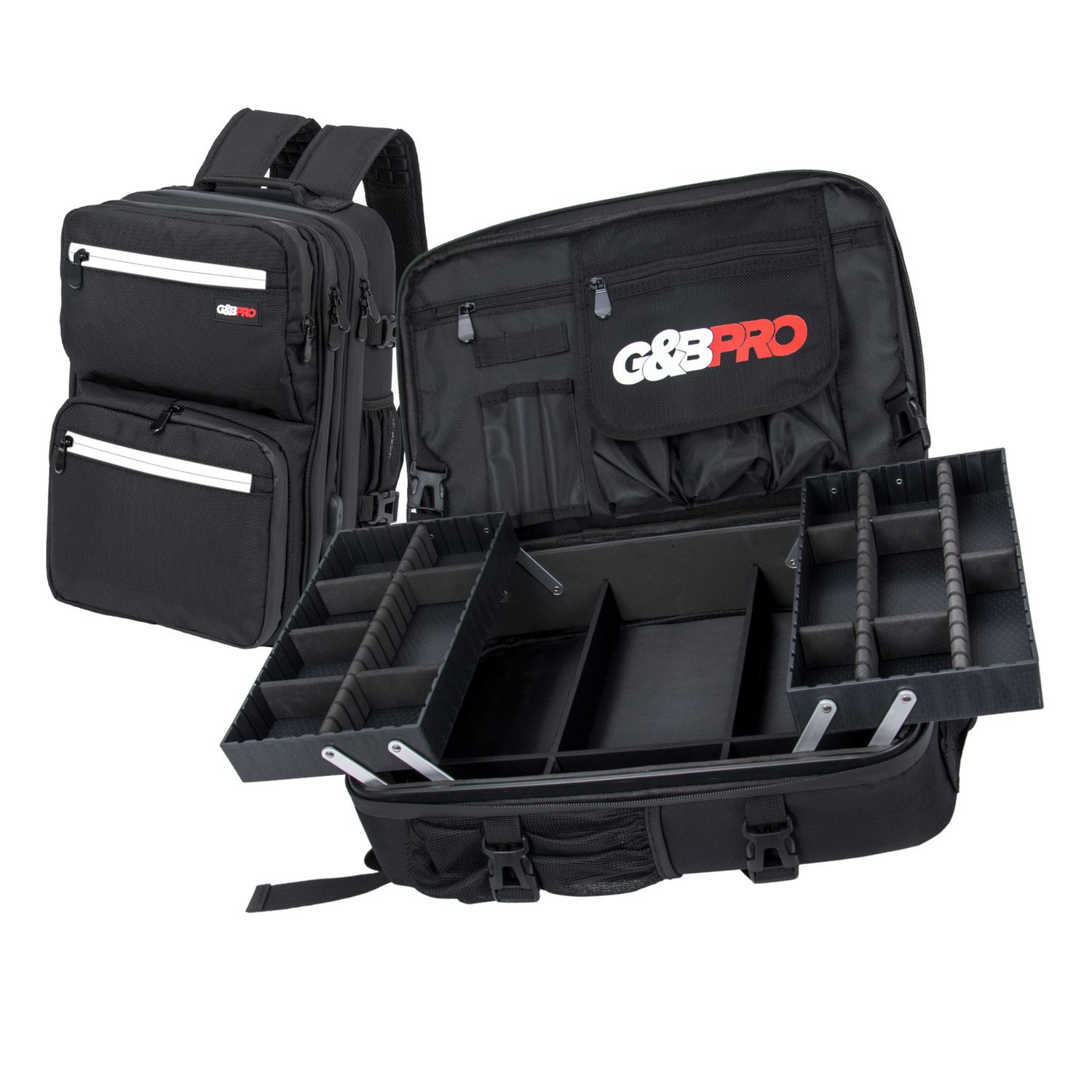 Compact carry-on backpack with padded straps, triple-layer design, patented extending tray system, and modular interior, ready for any job, anywhere. Transforms into a workstation in seconds.