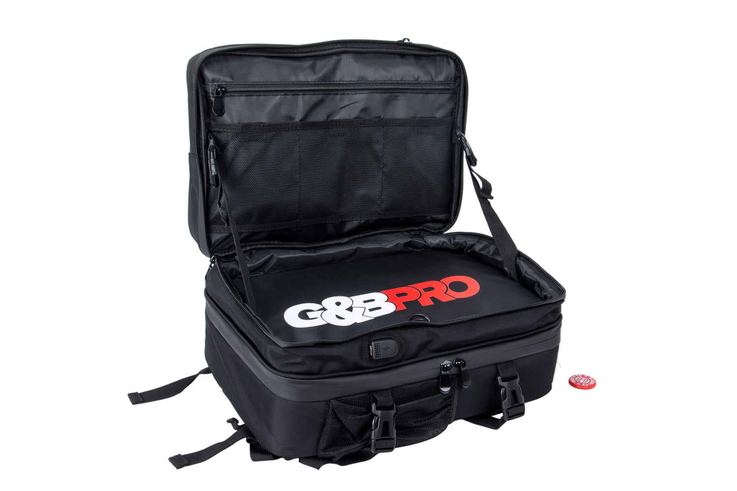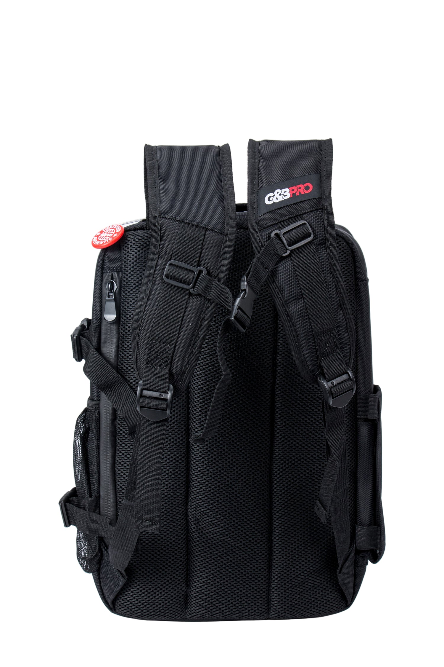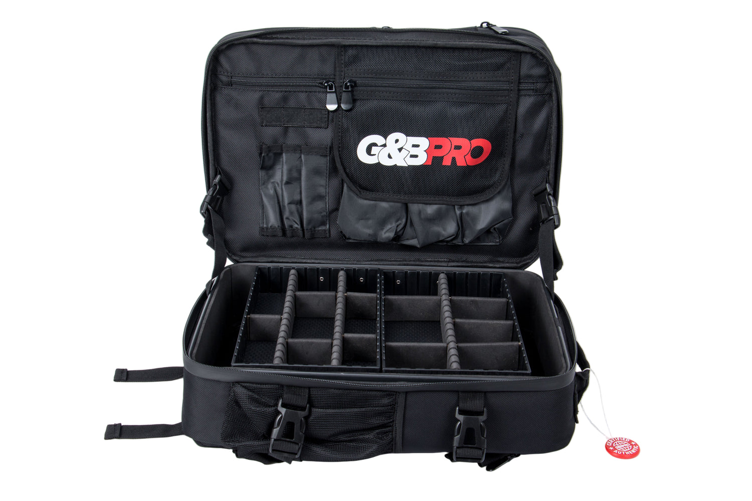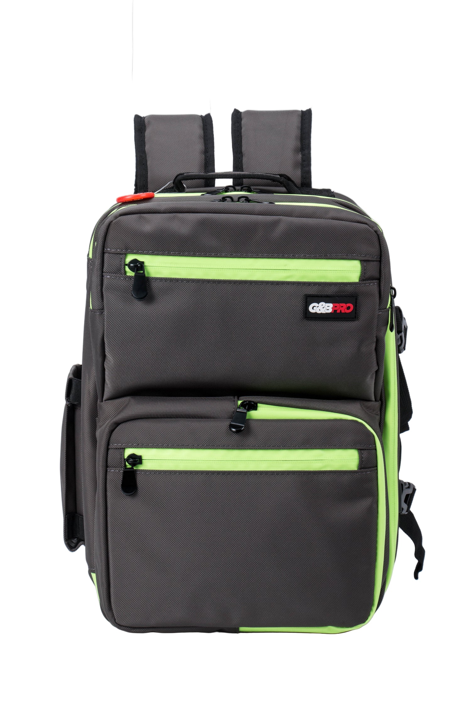 Compact carry-on backpack with padded straps, triple-layer design, patented extending tray system, and modular interior, ready for any job, anywhere. Transforms into a workstation in seconds.